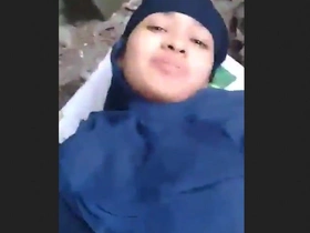 Adorable hijabi girl flaunts her ample bosom on camera