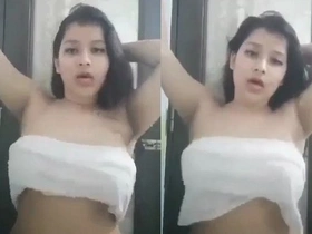 Bangla girl squeezes her breasts in MMS video
