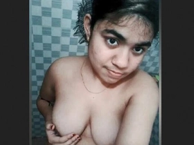 Cute aunty's bathroom selfies featuring her ample bosom