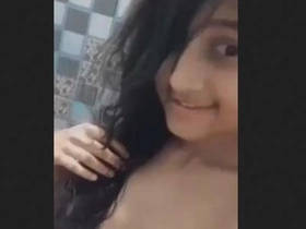 Indian girl strips naked in bathroom and shows her boobs