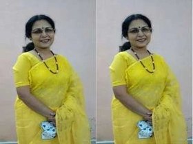 Desi mature woman with large breasts takes a bath