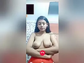 Cute Indian girl with big boobs flaunts them on video call