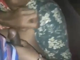 Indian girlfriend flaunts her body parts in a car while giving a blowjob