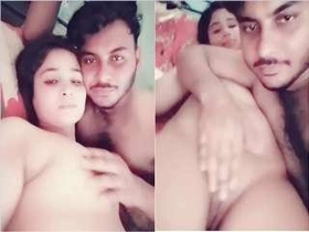 Husband fondles his wife's breasts in Hindi video
