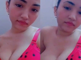 Exclusive video of a beautiful Indian girl flaunting her large breasts