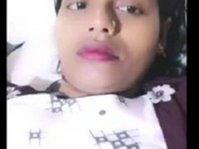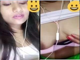 Indian girl with a pretty face bares her breasts on video call