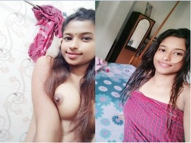 Exclusive video of a pretty Indian girl flaunting her beautiful breasts