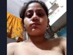 Bangladeshi bhabhi flaunts her big boobs and shaved puss