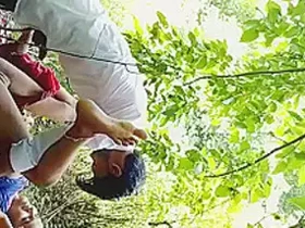 Amateur brunette couple explores Sivamogga Park in Kannada video