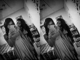 A Tamil girl with large breasts takes selfies in a video