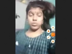 Indian girl with a pretty face bares her breasts on video call