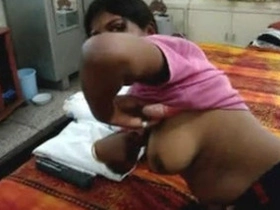 Indian college girl pleases herself with her small tits in XXX video