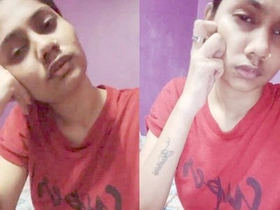 Exclusive video of a cute Indian girl showing off her small breasts