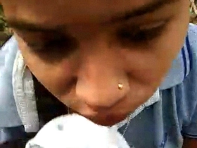 Outdoor sex with a cute desi girl giving a blowjob