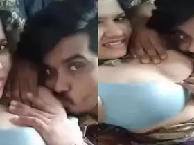 Indian couple's sensual foreplay with kissing and boob sucking