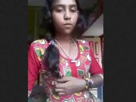 Exclusive video of a cute Tamil girl flaunting her breasts and genitalia