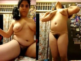 Indian beauty gets naked and flaunts her hairy pussy and perky tits