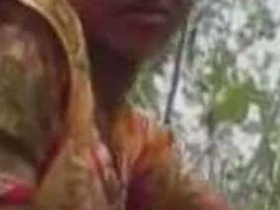 Village wife exposes her hairy pussy outdoors in live MMS