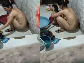 Hidden camera captures Indian bhabhi's nude bathing in bathroom
