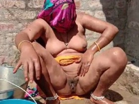 Indian amateur Bhabhi's private bathing moment captured on camera