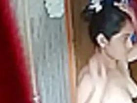 Indian housewife caught on hidden camera while showering