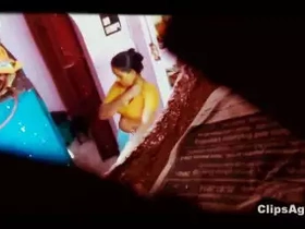 Desi aunty's saree changing caught on camera by nephew