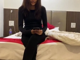 Watch a stunning girlfriend get naked in a hotel room, with Hindi audio