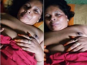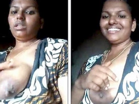 A Tamil beauty pleasures herself with her natural breasts and indulges in kissing
