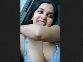 Desi girl with large breasts shows off on video call