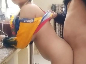 Tamil babe in saree gets naughty in the kitchen