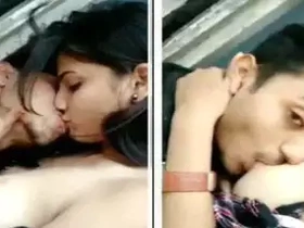 Indian girl gives oral pleasure to her partner's breasts