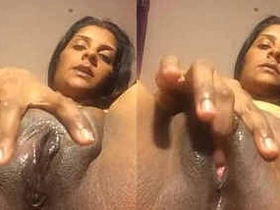 Sri Lankan babe savors her boobs while her partner inspects her vagina