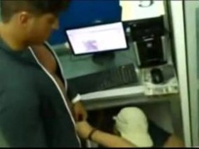 Horny couple caught on hidden camera having public sex at cyber cafe