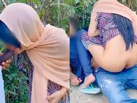 Hijabi girl gets outdoor sex in public place